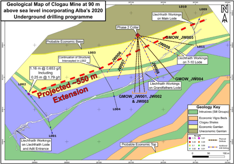 Alba said the Phase 2 programme will also seek to intersect projected depth extensions of certain historically worked lodes, namely Grandfathers Lode and the 7-10 Lode, it noted.