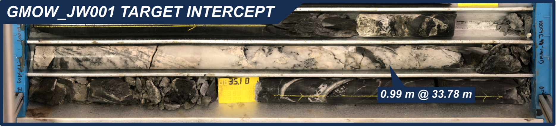 Figure 6: Photo of Main Lode extension in JW001, with a 0.99 m intercept at 33.78 m