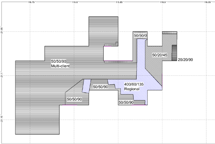 From a detailed review of existing available data, it was decided to only fly over the eastern section of the project area as the western area was recently flown at the same line spacing and line direction with that data available to purchase at less than the cost of re-flying it.