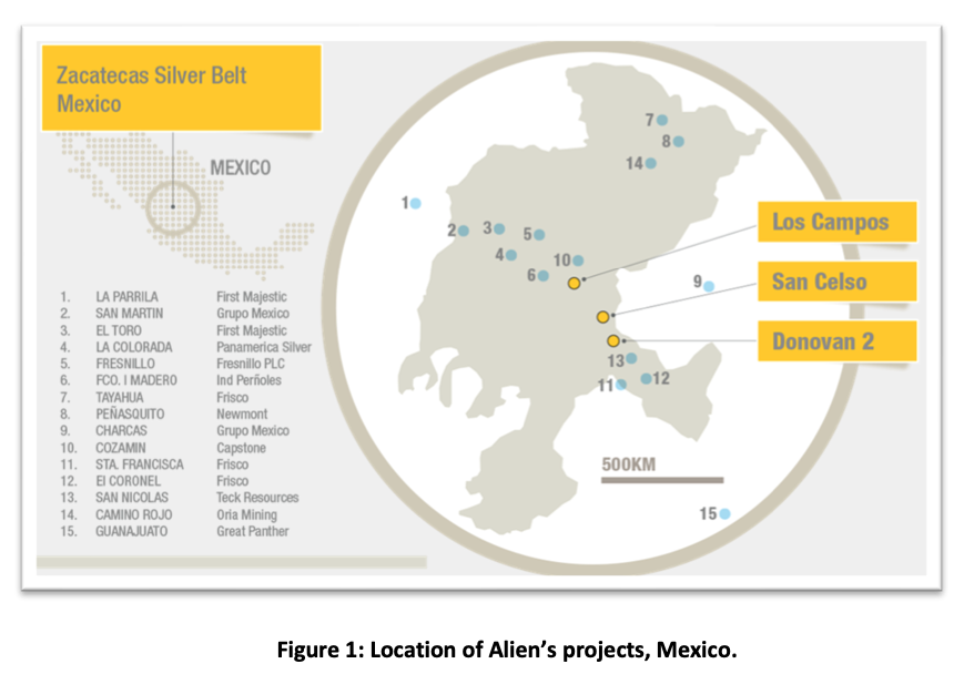 Alien Metals (UFO ) said initial drilling at San Celso and Donovan 2 - two high-grade silver and copper-gold projects in Zacatecas - has intersected encouraging zones of alteration to date.