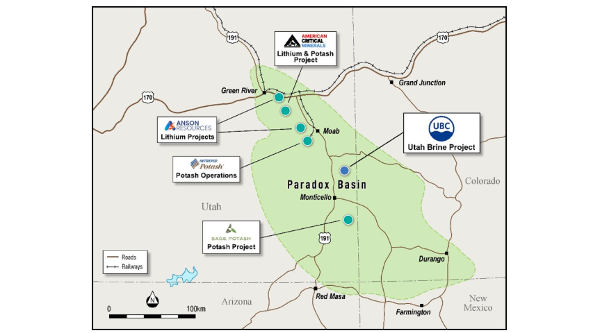 Utah Brine Corporation holds 100% of the Utah Brine project in the Paradox Basin, south-east Utah, USA, and Neometals has a 51% shareholding interest in Utah Brine Corporation.