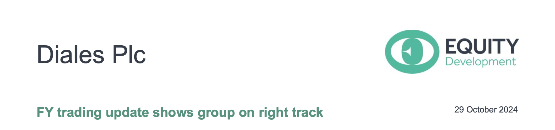 Diales has issued an update for the year to September, stating it traded broadly in line with consensus expectations. This is encouraging, suggesting profitability was largely unchanged in H2 and in turn, with higher EBIT margins. Staffing related issues in the US have continued, resulting in the decision to close the office. We think the Board’s rapid response in dealing with this issue reflects the ‘new’ Diales which is a major encouragement. The delivery of the hub and spoke model is gathering pace and the group re-branding to Diales completed in July.