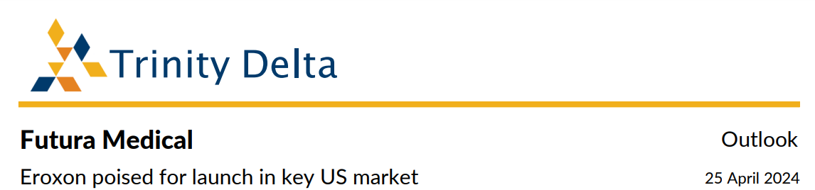 • Profitability in sight, initially driven by US launch Futura has a clear growth strategy and one of the key near-term priorities is to deliver revenue growth plus profitability within the next 12 months. The former will likely be driven by sales expansion in existing markets where Eroxon is already launched, plus new geographic launches, notably the US. If a US launch milestone is triggered, as we expect, this should propel Futura to profitability.