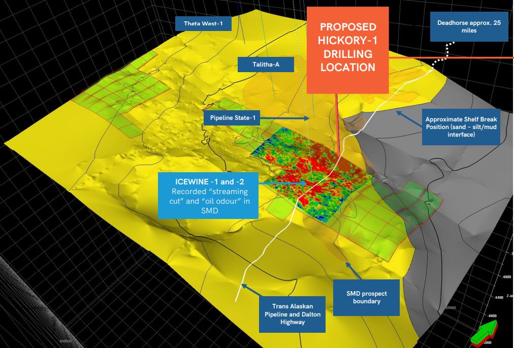 The KUP reservoir is a tertiary target and will be drilled subject to time remaining in the season, borehole conditions, and other technical considerations. The Hickory-1 spud is expected to occur in early March 2023, and flow testing of the well is planned to be undertaken during the 2023/24 winter season, subject to well results.
