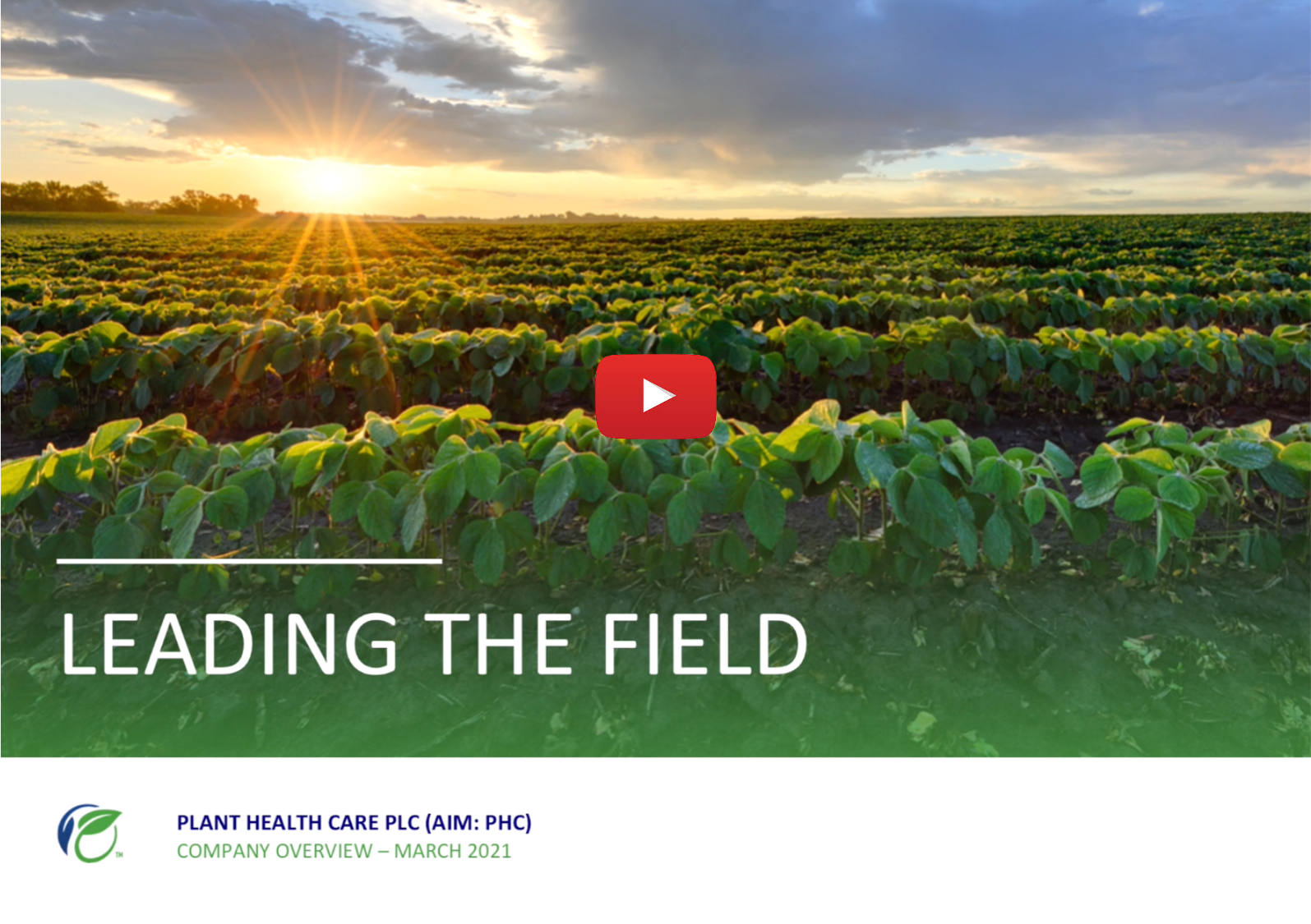 Plant Heath Care (PHC ) CEO Chris Richards, and COO Jeff Tweedy deliver the Company's latest investor presentation. The presentation covers Plant Health Care products and product pipeline including PRETEC - vaccine for plants. In addition, they explain their plan to expand into Europe, the largest market for sustainable agriculture.