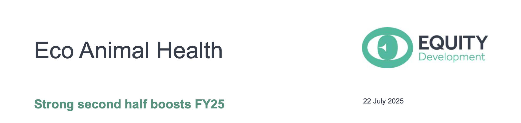 For the year to 31 March 2025 Eco Animal Health reported results in line with the outlook of the April Trading Update: revenue of £79.6m (FY24: £89.4m) and (adj.) EBITDA of £7.3m (FY24: £8.0m). The Group benefitted from a strong second half which was underpinned by sound cost control and pricing discipline. Gross profitability was 45.1% (FY24: 42.1%) with H2 at 48.6% compared to 43.1% a year earlier. The year-end cash position was, as expected, £25.0m. We have reviewed our Fair Value, which now indicates 136p/share.