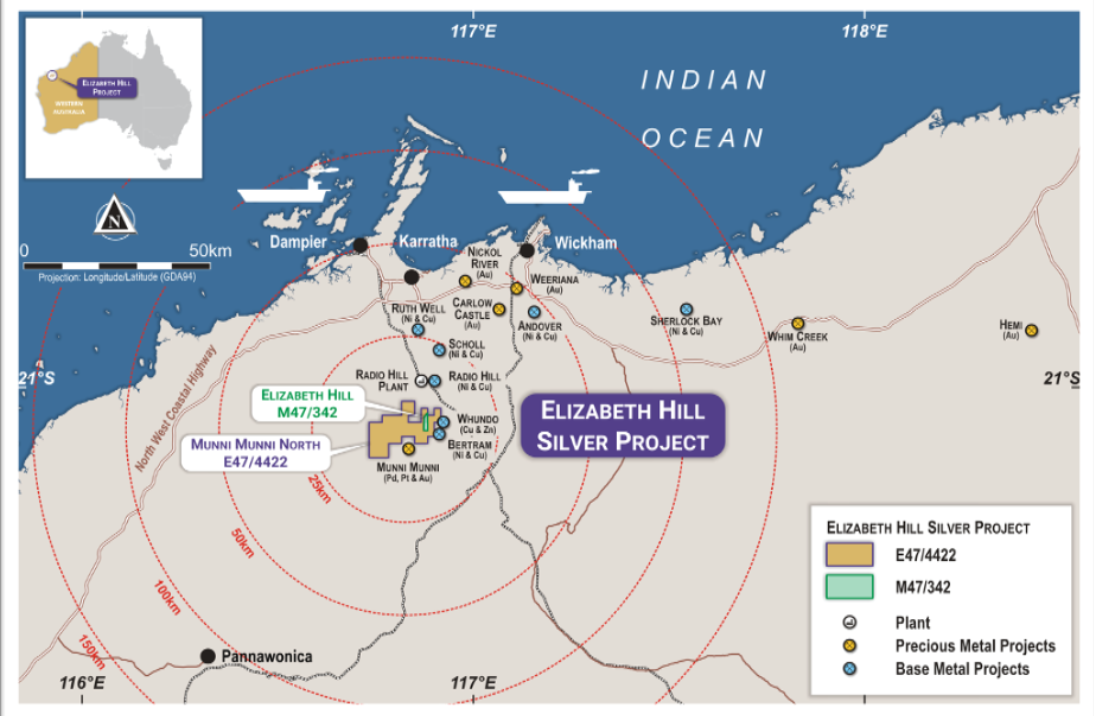 Figure 1: Location of Elizabeth Hill Silver Project, Western Australia