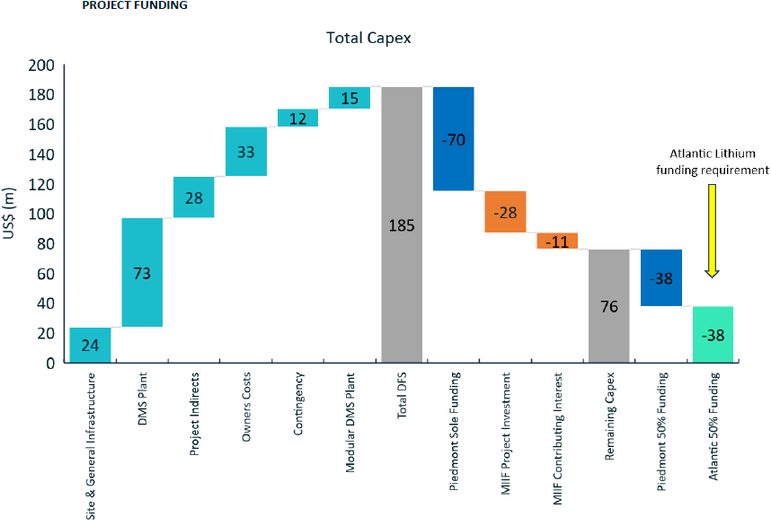 During the quarter, Atlantic received a commitment from partner Piedmont Lithium to sole fund the first US$70m, and 50% of any additional costs thereafter, of the total US$185m development cost for Atlantic's flagship Ewoyaa lithium project in Ghana. For a portion of the remaining 50%, Atlantic has commenced a competitive offtake partnering process to secure funding.