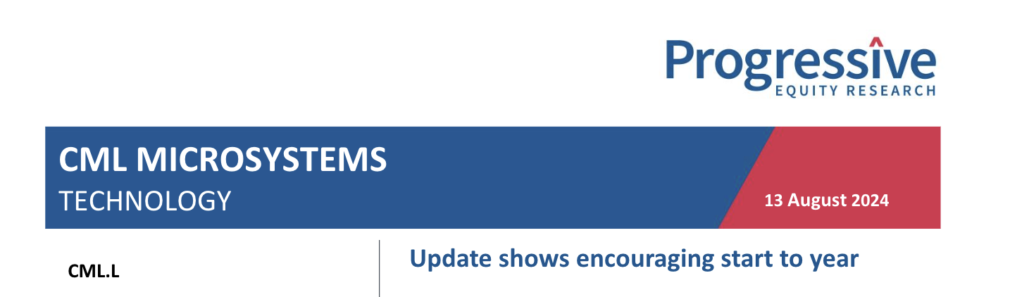 CML has today released an encouraging AGM statement. The first four months of the year have seen operating results slightly better than those for the comparable period of last year, with performance for the full year on track to match market expectations. Looking to H2, management remains of the view that customer inventory issues will improve. We are retaining our forecasts and our positive view on the prospects for CML.