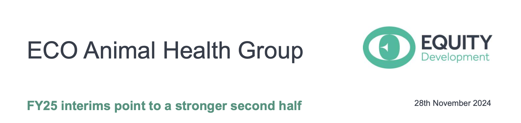 For the six months to 30 September 2024 ECO Animal Health reported revenue of £33.2m,-13%YoY and (adj.) EBITDA of £0.45m (H1 23: £0.7m). The gross margin remained firm at 40.3% compared to 40.8% a year earlier. In the October Trading Update (Equity Development report ‘Trading update: headwinds in China’) the Group reported that the combination of a lower incidence of disease and reduced Aivlosin® demand in China and SE Asia markets meant that FY25 (adj.)