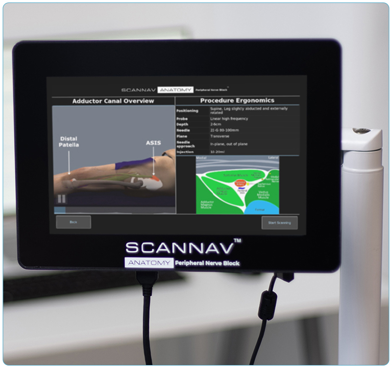 The technology is particularly useful to anaesthesiologists. Practicing needle insertion and identifying the correct location for depositing anaesthesia comes with inherent risks to human subjects. Enter NeedleTrainer, which uses a retractable mock needle and virtual image overlays to simulate needling non-invasively on a live participant, using an authentic, live ultrasound scan.