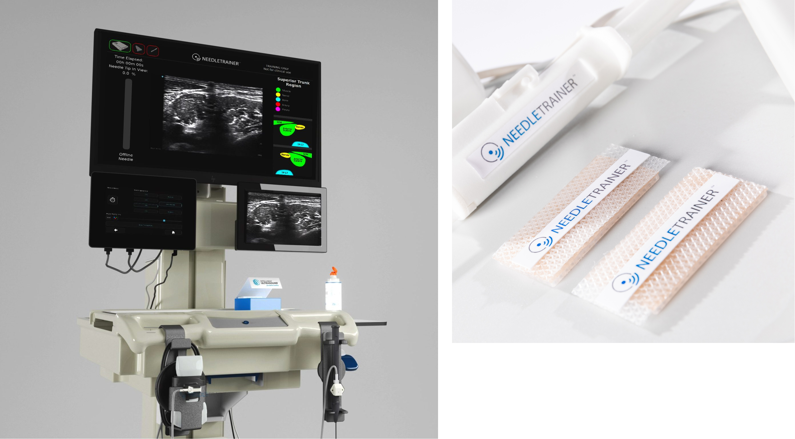 Intelligent Ultrasound also offers NeedleTrainer Plus which adds a PNB trainer with the company's proprietary ScanNav AI technology. When combined with ScanNav Anatomy PNB, NeedleTrainer can deliver enhanced training. Once a practitioner is competent, they can use the standalone ScanNav Anatomy PNB device in the clinic for real-time AI assistance of ultrasound-guided regional anesthesia.