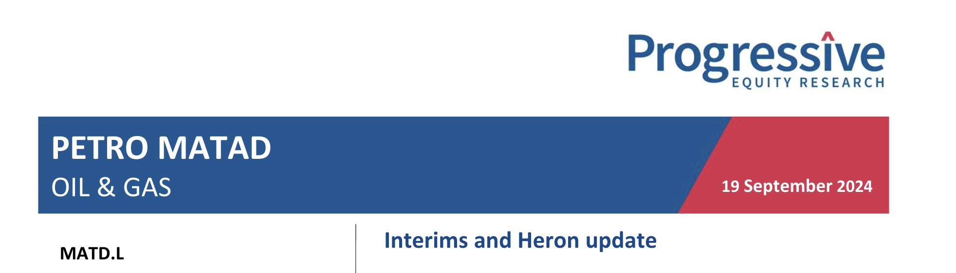 Petro Matad has this morning released its interim results and an operational update on the Heron-1 well. The interims are of minor import as the newshas been covered over the year to date. However,on Heron-1, Petro Matad has encountered some delays in getting a permit to install long-term production facilities. This is not a major setback as the company will use temporary facilities in the short-term. The company has also reached anagreement in principle to sell and export through the facilities in the adjacent block XIX. This should allow production to start in October.