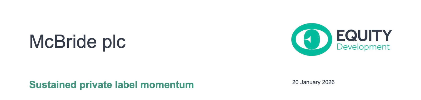 McBride’s H126 trading update confirms that demand for private label cleaning products remains at high levels, with volume growth of 0.4% and total sales growth of 0.8%. Moreover, McBride continues to win new contracts leading to management’s confidence in achieving FY26E expectations of Adj. EBIT of c.£64m, being the third year of c.£65m Adj. EBIT. Having announced a £20m share buyback last November we raise our Adj. EPS forecasts by 7%-8%. Yet despite rallying c.30% since November the stock is still trading on only 5.7x cal 2026 PER and we see scope for a significant rerating towards our 235p Fair Value (equivalent to a c.6% cal 26 FCF yield). For more detail on why the group’s low valuation is an anomaly among the consumer sector please see our recent initiation “McBride: Proudly, profitably, private label”.