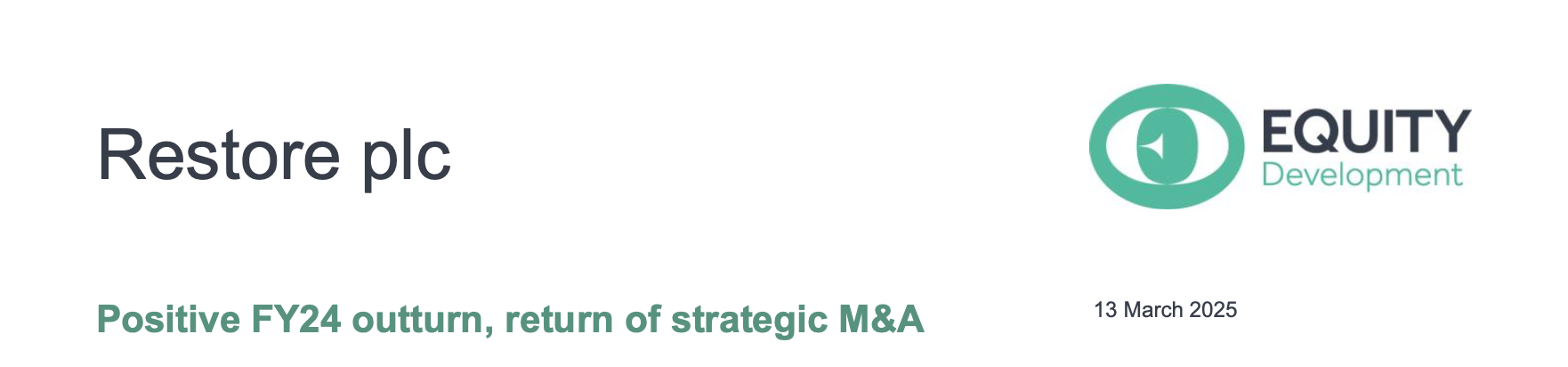 Restore’s FY24 results confirm a period of strong delivery against financial and strategicpriorities. Group revenue was stable year on year at £275m and adjusted PBT increased by14% to £34.4m, a shade ahead of our forecast, driven by good progress on margins. Our underlying forecasts are unchanged, anticipating further progress towards the 20% medium term operating margin target. Restore has also returned to the acquisition trail this morning with the £33m acquisition of Synertec, a market leading document management business with longstanding relationships in public and commercial sectors. We upgrade our earnings forecasts by 7% to 8% in FY25/FY26 and see compelling value in Restore’s shares, which now trade on <10x P/E for FY26. We reiterate our 400p Fair Value estimate.