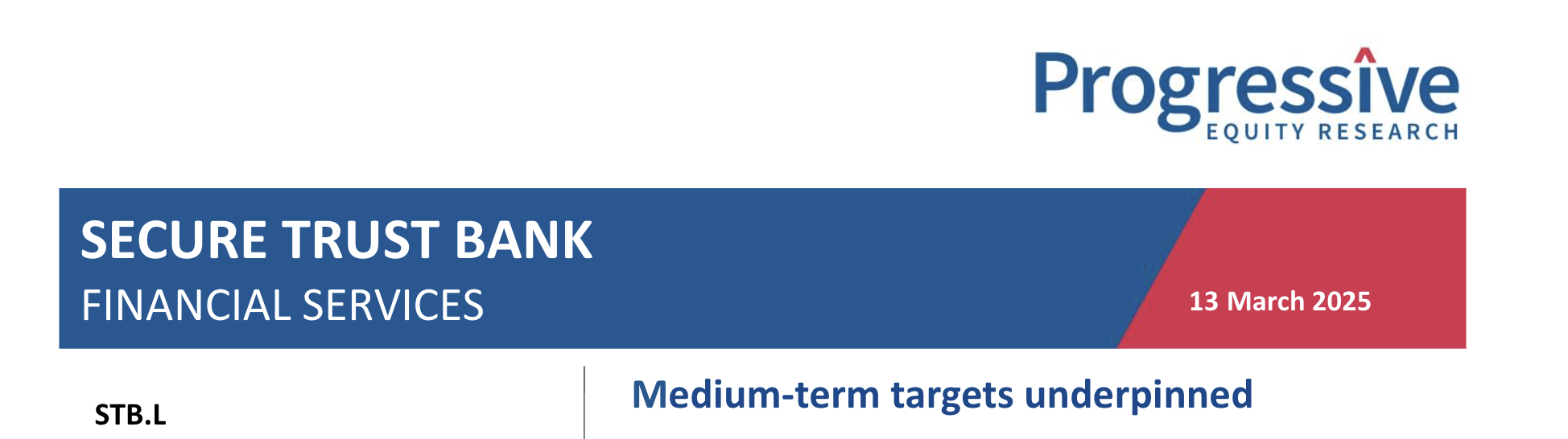 Secure Trust Bank’s FY24 results provide confidence in the bank’s ability to deliver on its medium-term targets. Strong loan growth, stable net interest margins and continued cost discipline delivered 18% pre-impairment profit growth in the year. Continued focus on lower-risk segments, combined with further benefits from STB’s cost-efficiency programme, Project Fusion, underpin a prospective 14% ROE.