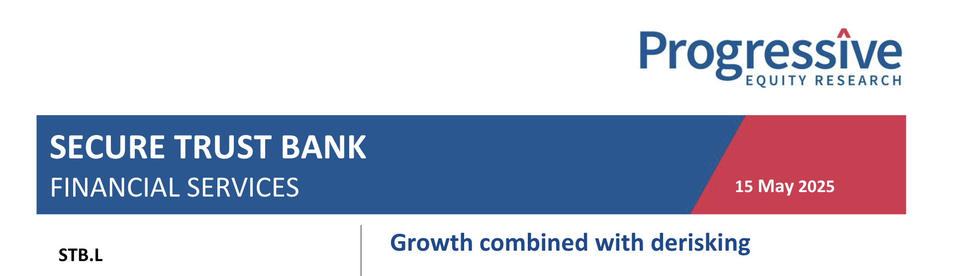Secure Trust Bank’s (STB’s ) Q1 25 Trading Update demonstrates convincing progress towards its medium-term targets (MTT), combined with the start of derisking the Vehicle Finance loan book through the sale of £25.8m of defaulted loans. Impressive year-on-year growth in net loans (10.5%) was driven by a strong performance in Business Finance. STB remains on track to deliver £8m of annual costs savings, previously announced. Our forecasts are unchanged but reinforced by today’s trading update.