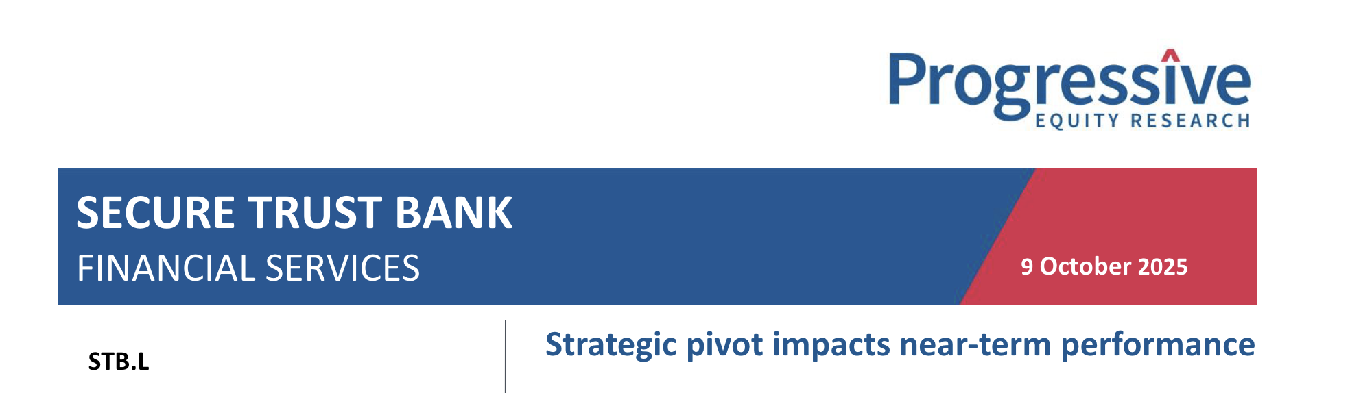 Secure Trust Bank (STB ) announced in July the closure and run-off of its Vehicle Finance (VF) business, which would, through reallocation of capital to the more profitable businesses, enhance overall group profitability. STB has announced today a faster Q3 decrease in the VF loan portfolio than anticipated. This, combined with VF impairments remaining elevated, has resulted in a substantial PBT forecast downgrade for FY25 and more modest downgrades for FY26 and FY27. Management remains confident, however, that STB will deliver c.30% pre-exceptional profit growth in FY25.