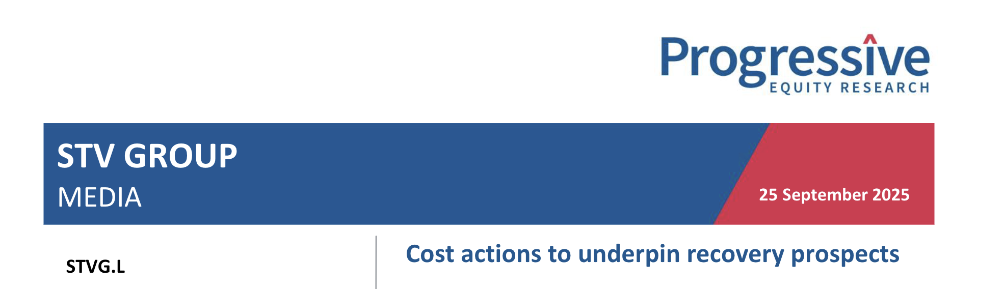 Interim results are consistent with the guidance issued in July, and we make no changes to our full-year operating profit estimates. Trading remains challenging in Q3 for both advertising and programme commissioning, but STV is announcing a number of operating and financial cost actions that should underpin the group’s potential to bounce back strongly and deliver longer-term growth when markets recover.