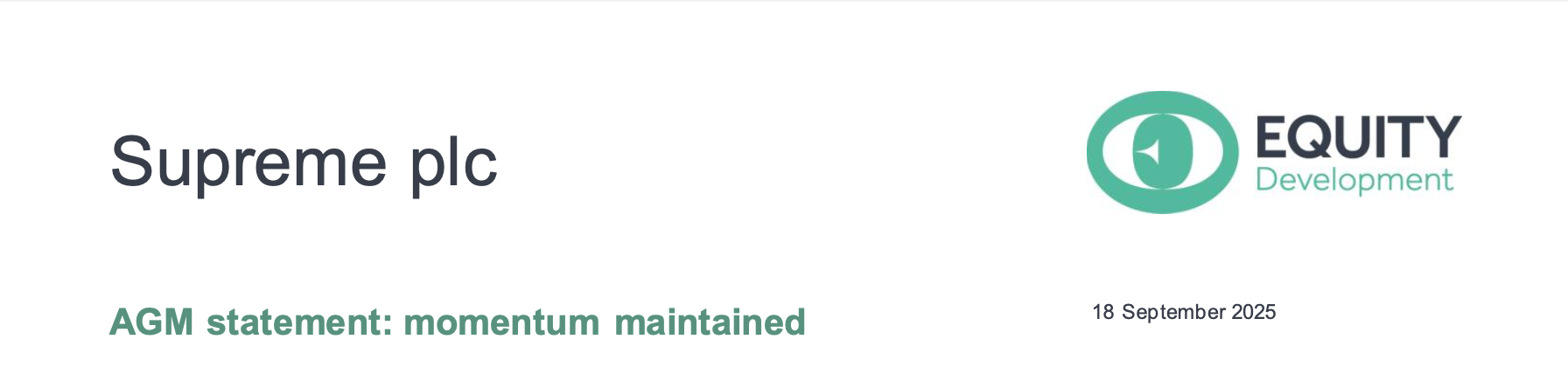 In a statement to accompany today’s AGM, Supreme reports that the Group has “continued to see good momentum across its portfolio in the first half of the current financial year” (H126). The Group highlights the combination of strong recent (FY25) financial performance and strategy of complementary acquisitions.