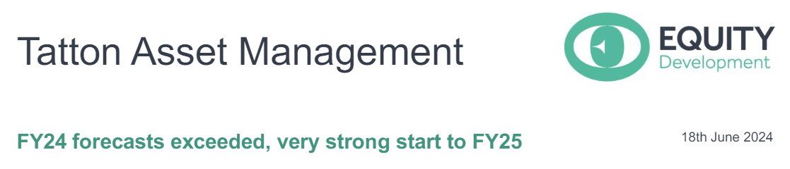 Tatton has exceeded our previous forecasts for FY24. It has set an ambitious new 5-year plan to reach £30bn AUI by end-FY29. It has had an exceptionally strong start to FY25, with net inflows of £0.9bn in Q1-25 up to 14 Jun (matching the total inflows of H1-24), bringing AUI to £18.6bn.
