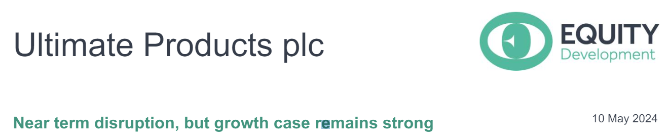 Ultimate Products announces today that sales revenue fell by 7% in its FY2024 third quarter and is anticipated to remain in negative territory in Q4. As a result, the company believes that EBITDA will now be in the range of £17.5m to £18.5m compared with a current market consensus figure of £21.5m. However, current sales setbacks look likely to prove temporary. The company clearly states its confidence in the group’s prospects for FY2025 as a whole.